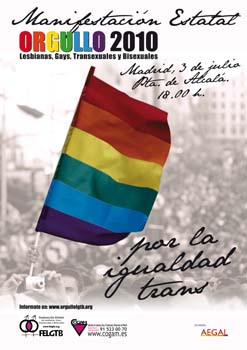 Madrid volverá a ser protagonista un año más de las fiestas del Orgullo Gay 2010 que se celebrarán del 30 de junio al 3 de julio bajo el lema “Por la igualdad trans“.